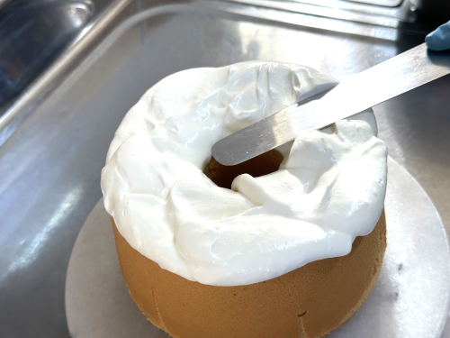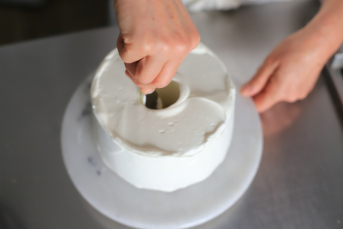 しっかり冷やしたケーキを型出しし、ラッピングの仕方を動画でお伝えします。
